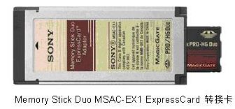 随着此款记忆棒的推出,索尼同时推出Memory Stick Duo MSAC-EX1 ExpressCard 转接卡,适用于配备ExpressCard 插槽的笔记本电脑。