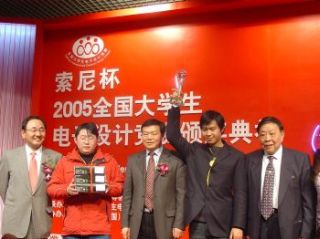 [北京] 2005年12月17日,“索尼杯-2005全国大学生电子设计竞赛”颁奖典礼在北京国际会议中心隆重举行。来自教育部、信息产业部、全国竞赛组织委员会和索尼(中国)有限公司的相关领导以及来自全国25个赛区的各赛区教育厅主管竞赛领导、组委会、专家组代表、获奖学生代表等近400人齐聚一堂参加了此次盛会。国家信息产业部副部长娄勤俭、国家教育部高教司司长张尧学、全国大学生电子设计竞赛组织委员会秘书长王越、索尼集团高级副总裁鹤岛克明以及来自中国科学院、工程院的6位德高望重的院士亲临颁奖现场,发表了热情洋溢的致辞并为获得本年度竞赛“索尼杯”、“全国一等奖”、“优秀征题奖”和“赛区优秀组织奖”的获奖代表颁发了获奖证书和奖品。本届大赛的最大悬念,2005全国大学生电子设计竞赛最高奖“索尼杯”终于揭晓,来自东南大学代表队的任滨、李奚鹏和袁帅三人从全国4662支参赛代表队中脱颖而出,捧回了本届“索尼杯”。隆重热烈的颁奖典礼为“索尼杯-2005全国大学生电子设计竞赛”划上了一个圆满的句号。