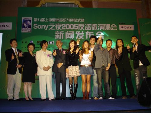 2005年Sony连续第三年支持上海亚洲音乐节闭幕式暨反盗版演唱会——今年的“索尼之夜2005反盗版演唱会”是继2003年、2004年之后,Sony又一次独家冠名支持这一音乐盛会。每年一度的反盗版演唱会作为上海亚洲音乐节的闭幕演出,以群星汇聚的演出阵容大力推广“尊重原创,抵制盗版”的主题。Sony作为集电子硬件和娱乐内容为一身的国际领先品牌,也以对这一盛会的连续大力支持表达对“尊重原创,抵制盗版”主题的倡导和关注。