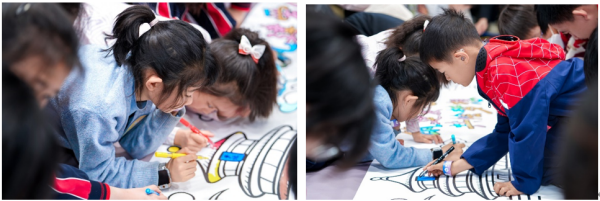 随后,进入本次活动的核心环节 —— 集体协作绘画。在志愿者的悉心陪伴与协助下,孩子们拿起画笔尽情挥洒色彩。大家齐心协力、默契配合,用缤纷笔触共同勾勒出包括北京中轴线在内的多处北京特色建筑于特色产品。故宫的石狮子、天坛的祈年殿…在孩子们充满童真与希望的笔触下焕发出别样的生机。