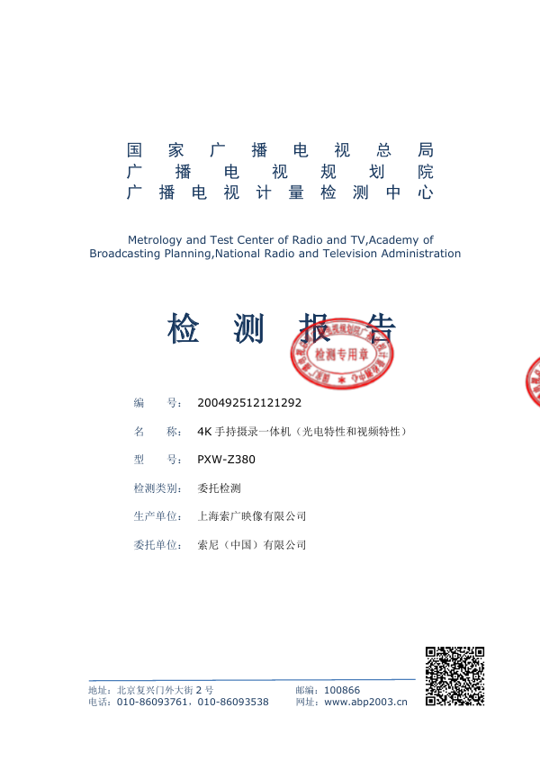 【PXW-Z380广电总局检测报告详细内容】