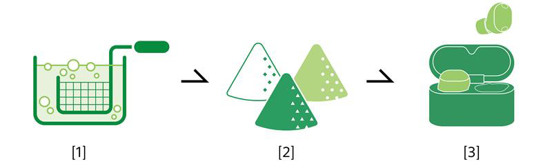 以 LinkBuds 为例,过去使用一般的 ABS 再生材料则难以实现,我们做成了可以与 ABS 原生塑料制作匹敌的精致外观。