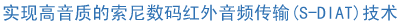 DAV-DZ770W采用了最新的S-DIAT(数码红外线音频传输)技术,使后置扬声器的安装简单容易,摆脱了装修和环境等因素的限制。在追求无线便利的同时,DAV-DZ770W还是一款真正对应高素质音频格式Super Audio CD的影院组合,它不但能够播放Super Audio CD的碟片,而且扬声器配置的“Nano-Fine”超高音单元,能够还原出高达50KHz的频率响应范围,是消费者真正能够享受Super Audio CD所带来的无与伦比的音质表现。
